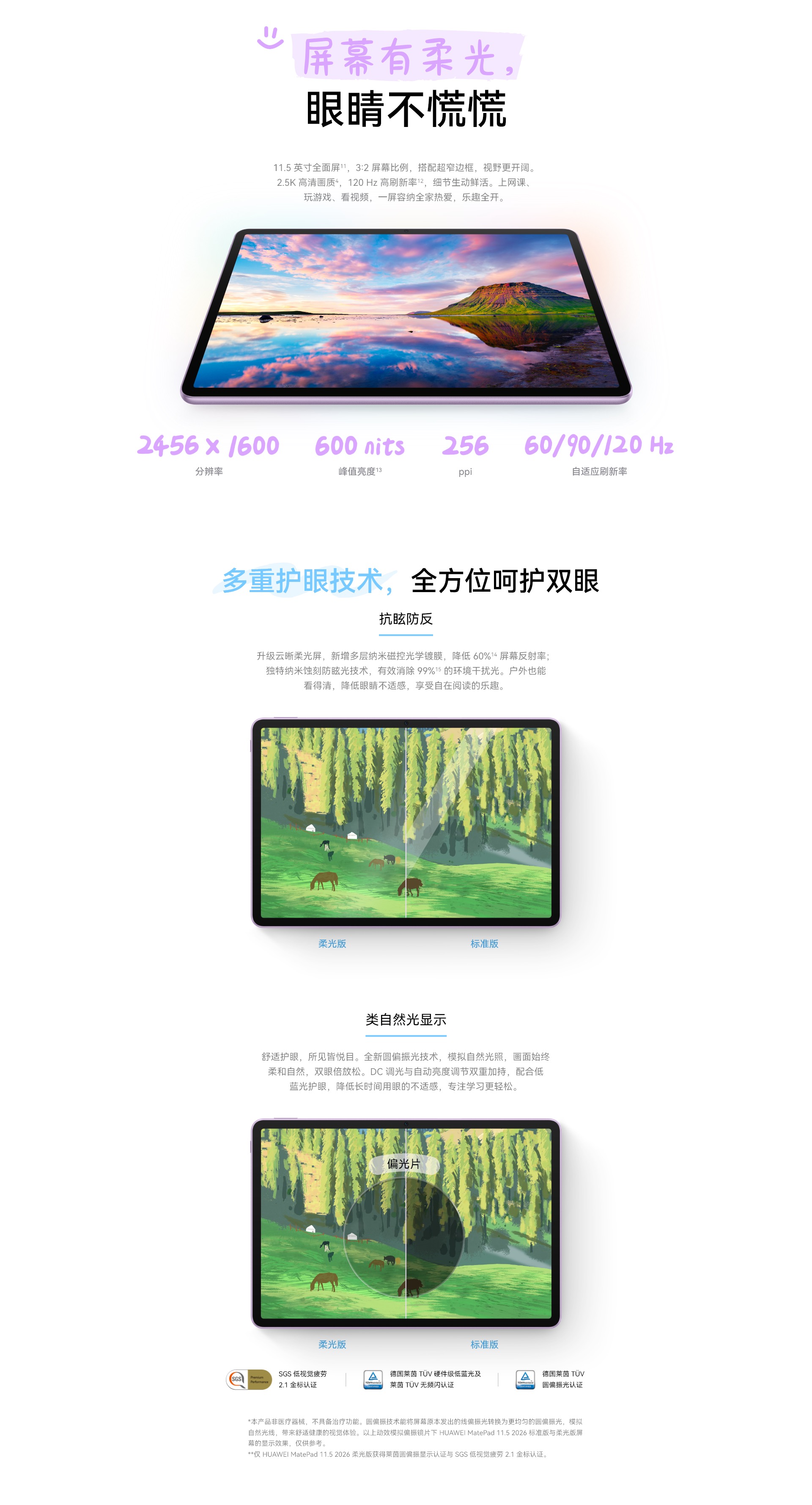 HUAWEI MatePad 11.5 2026 柔光版 WIFI 8GB+256GB 羽砂紫