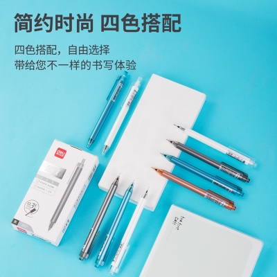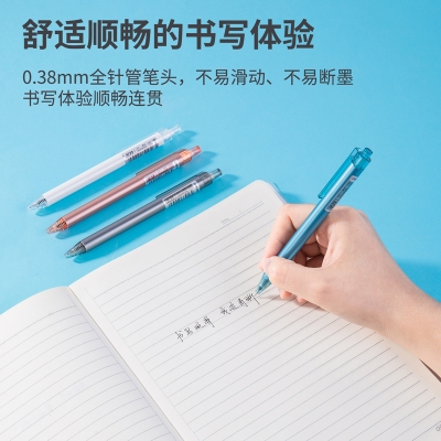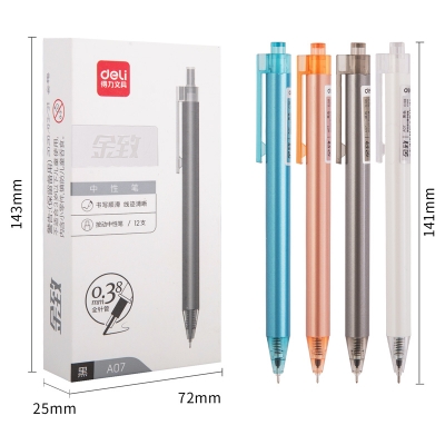 得力A07按动中性笔0.38mm全针管(黑)