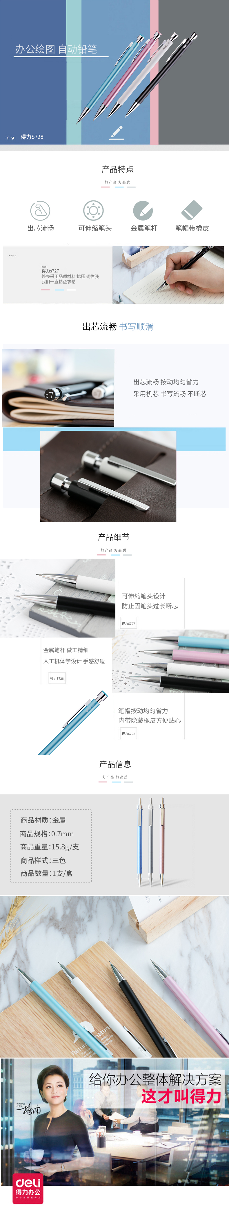 得力S728金属活动铅笔