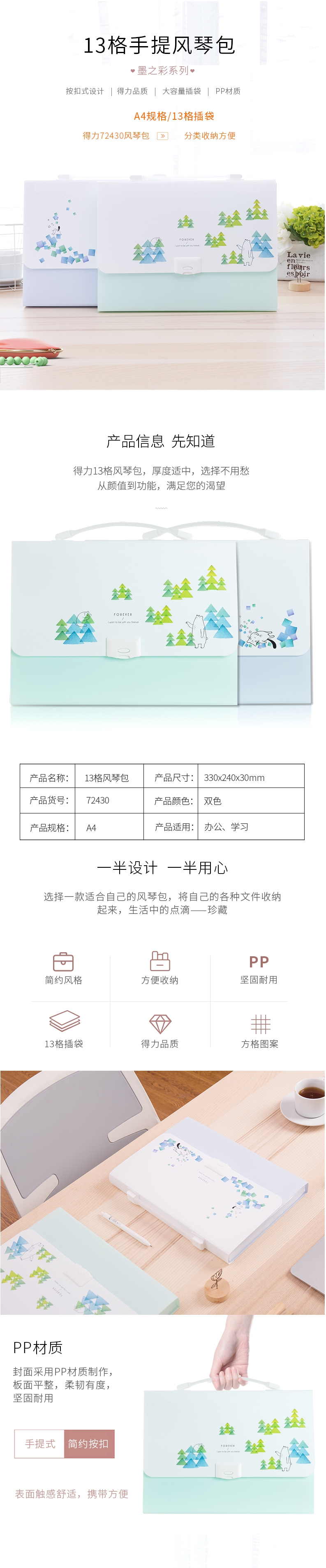 得力72430风琴包(蓝)